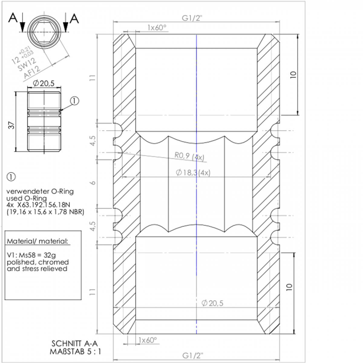 Adapter Ø20,5 L28 MS chrom 1/2″x1/2″ AG
