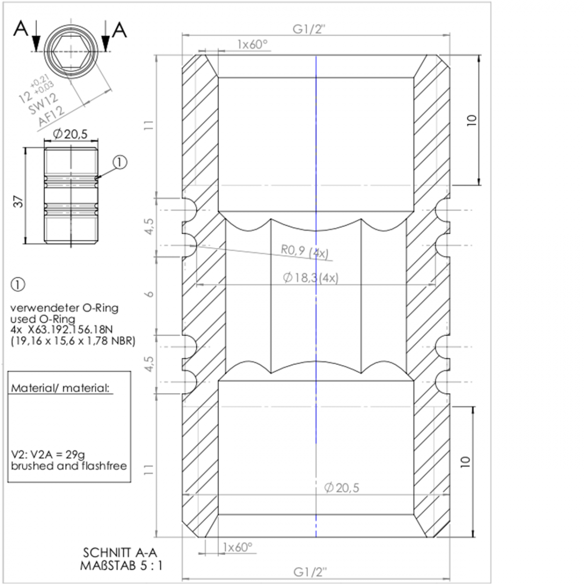 Adapter Ø20,5 L28 V2A 1/2″x1/2″ AG