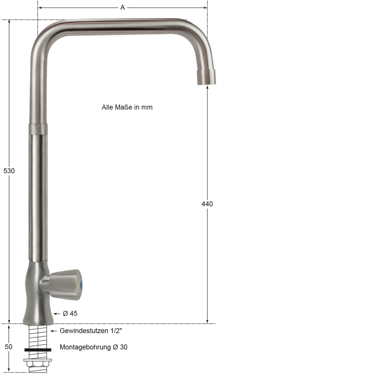 - Ausladung: 250 mm, 300 mm, 350 mm, 400 mm
