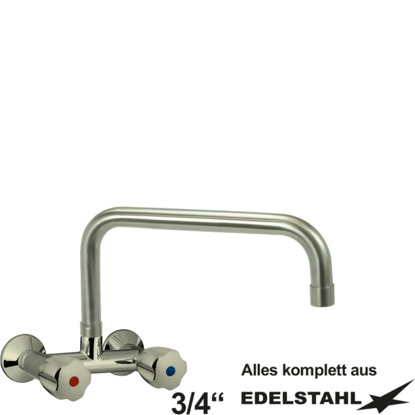 Zweigriffmischer-Wandbatterie 3/4″ AD 150 ± 20 mm, Auslauf oben