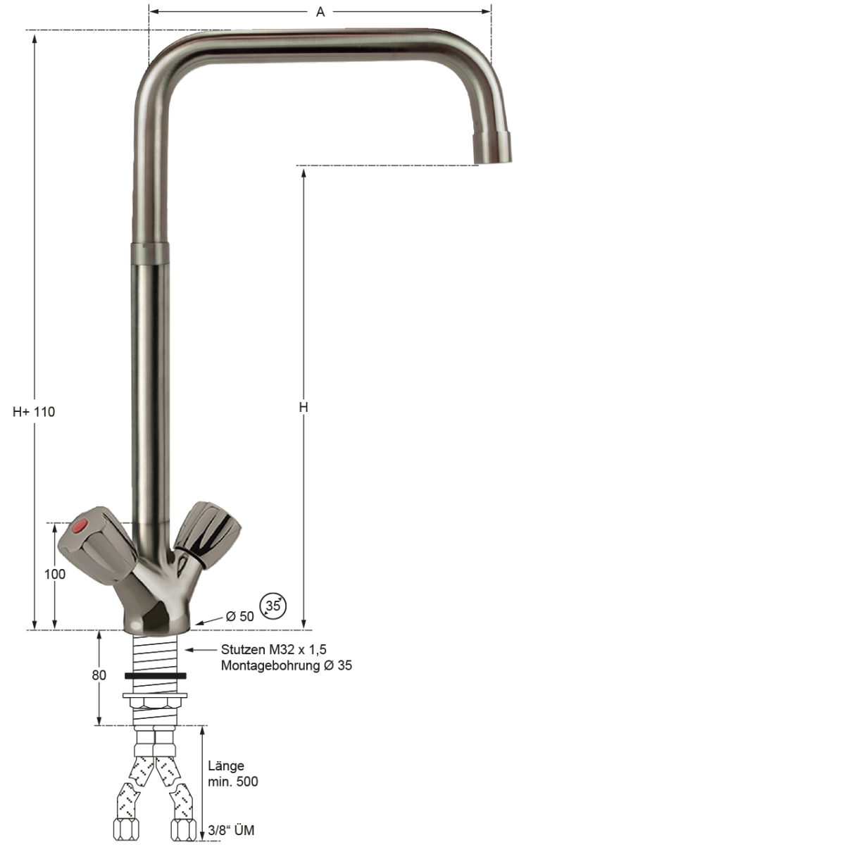 Edelstahl-Schläuche mit 3/4″ ÜM