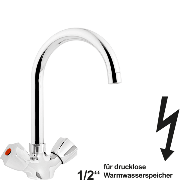 Hebelmischer-Spültischbatterie 1/2″ A250 H180 mit Schwenkauslauf verchromt