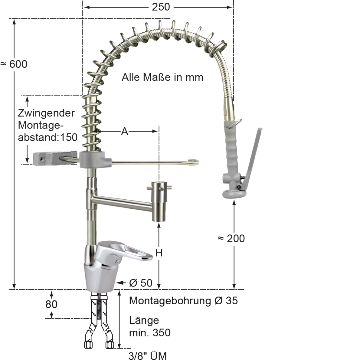 Standrohr, Standrohrhalter, Brauseeinhängehaken, Federhalter, Tragfeder, kombiniert mit PA66