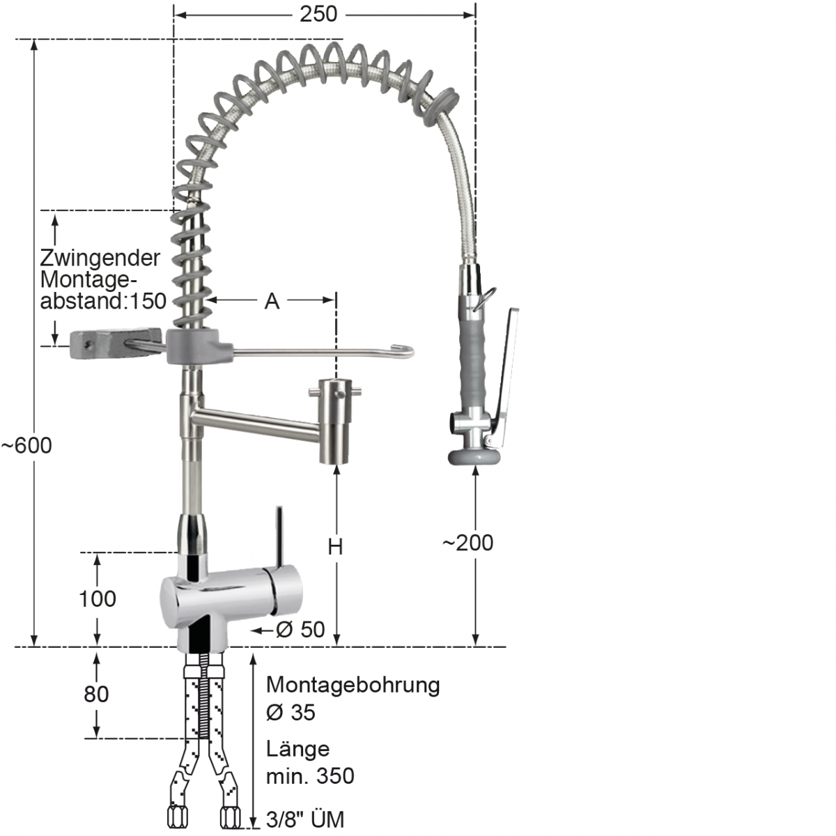 • Wasseranschluss: 3/8" ÜM