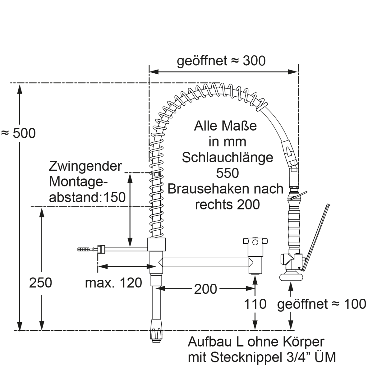• Höhe bis Auslauf: 210 mm
