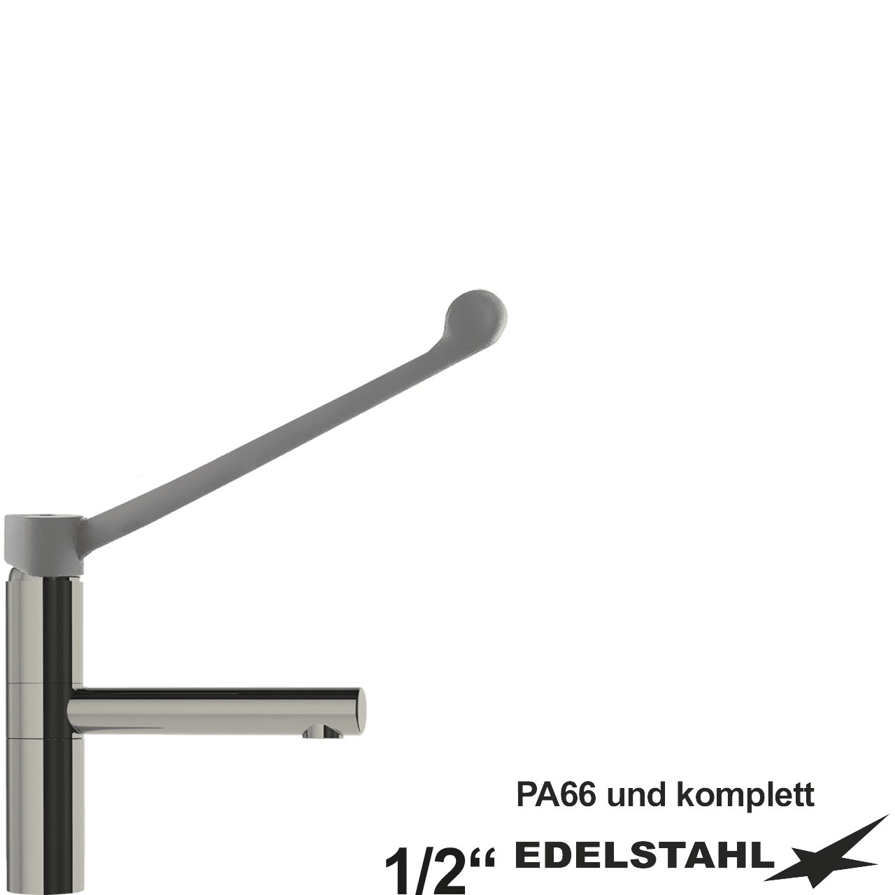 Hebelmischer-Waschtischbatterie 1/2″ mit Schwenkauslauf und langem Hebel (auf Sockel 100mm) komplett aus Edelstahl