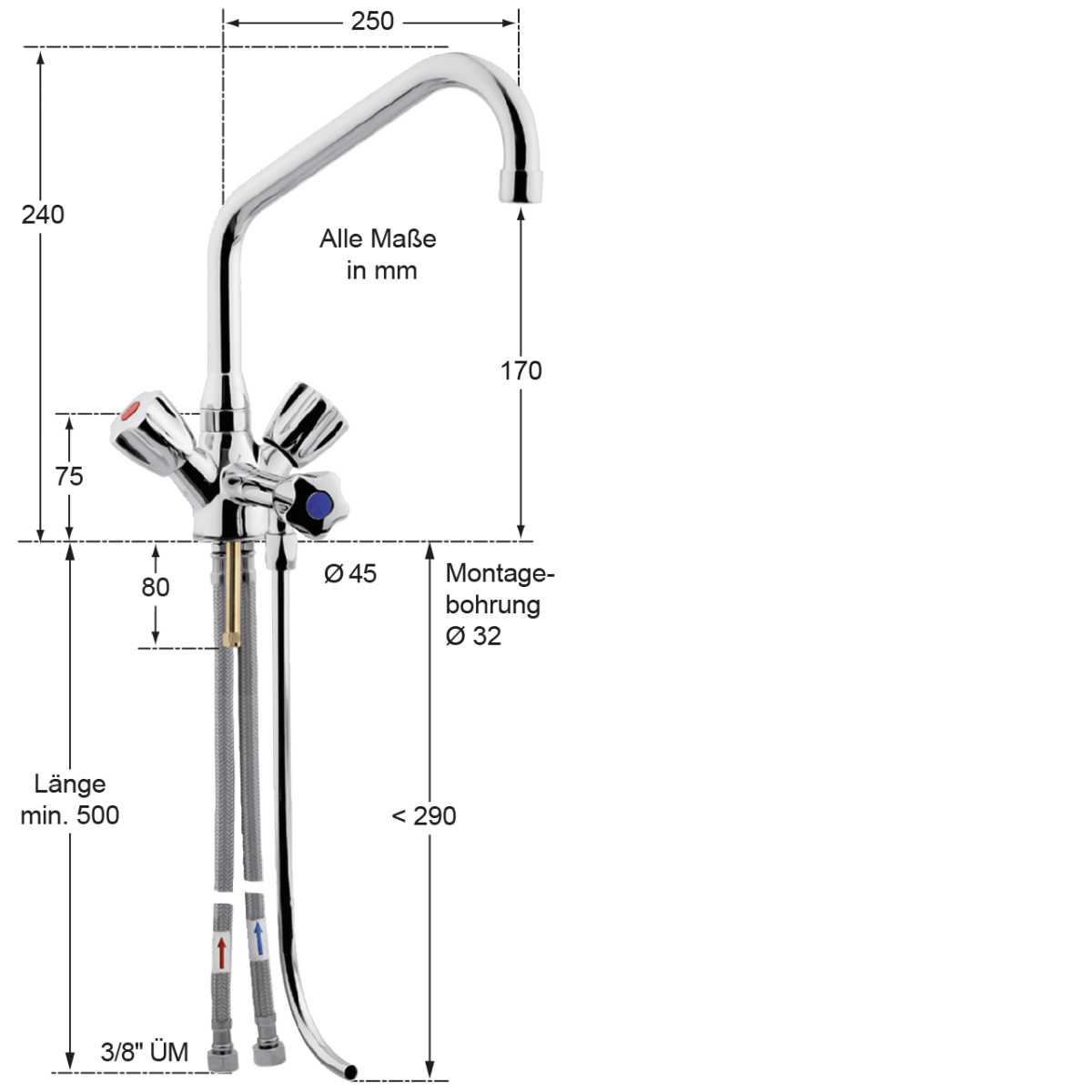 • Wasseranschluss: 3/8" ÜM