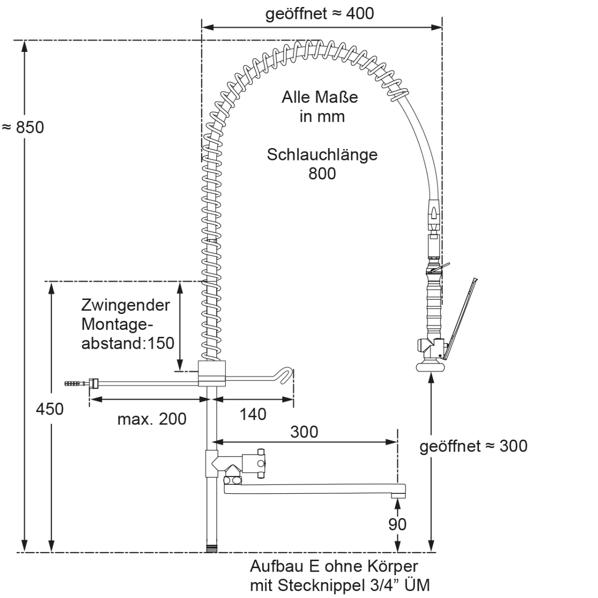 Standrohr, Standrohrhalter, Brauseeinhängehaken, Federhalter, Tragfeder, Gelenkadapter komplett aus poliertem Edelstahl