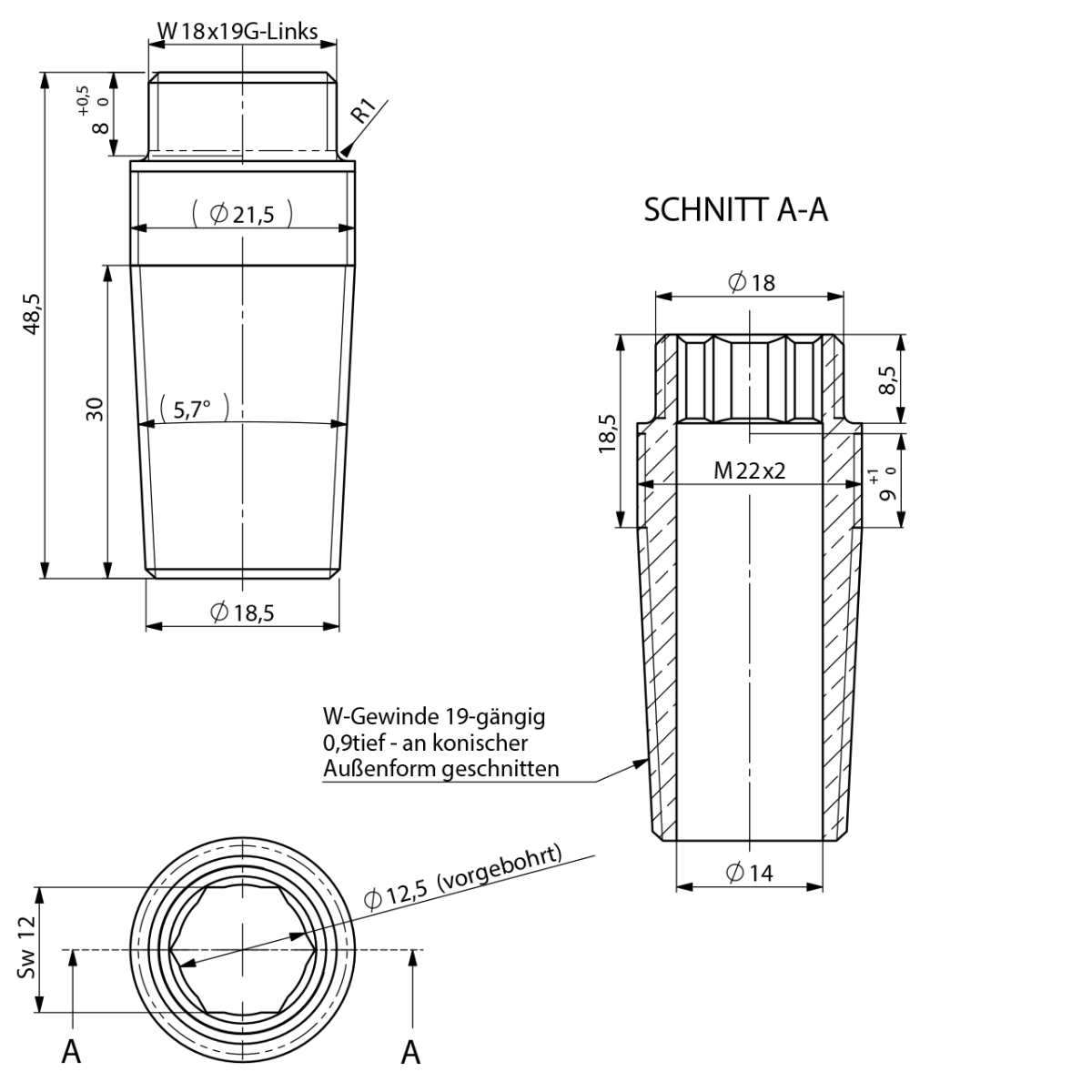 Innenschraube M22x2 AG W18x19G_L IØ19 zu A1-1380 MC
