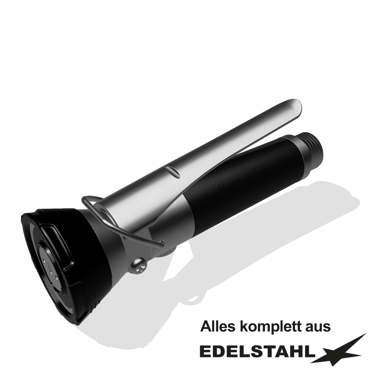 Der Handgriff ist aus wärmeisoliertem, schwarzem fiberglasverstärktem Kunststoff