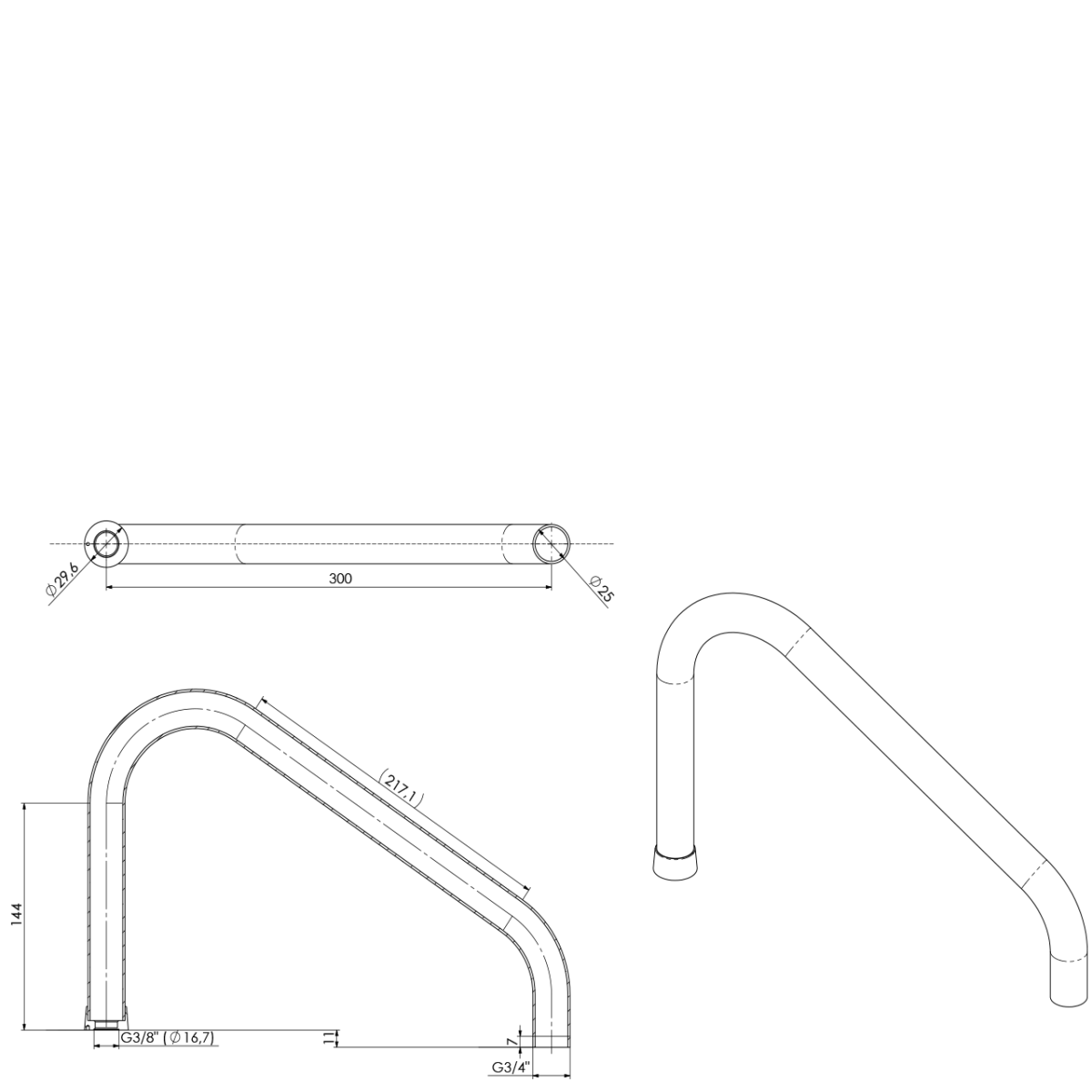 Kessel-Rohreinlauf A300mm Ø25 geschraubt