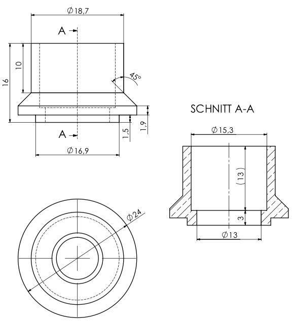 Längenausgleichshülse Messing 15,3 x 16