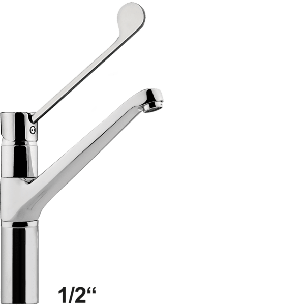 Hebelmischer-Spültischbatterie 1/2″ mit langem Hebel und gegossenem Auslauf verchromt auf 100 mm Säule