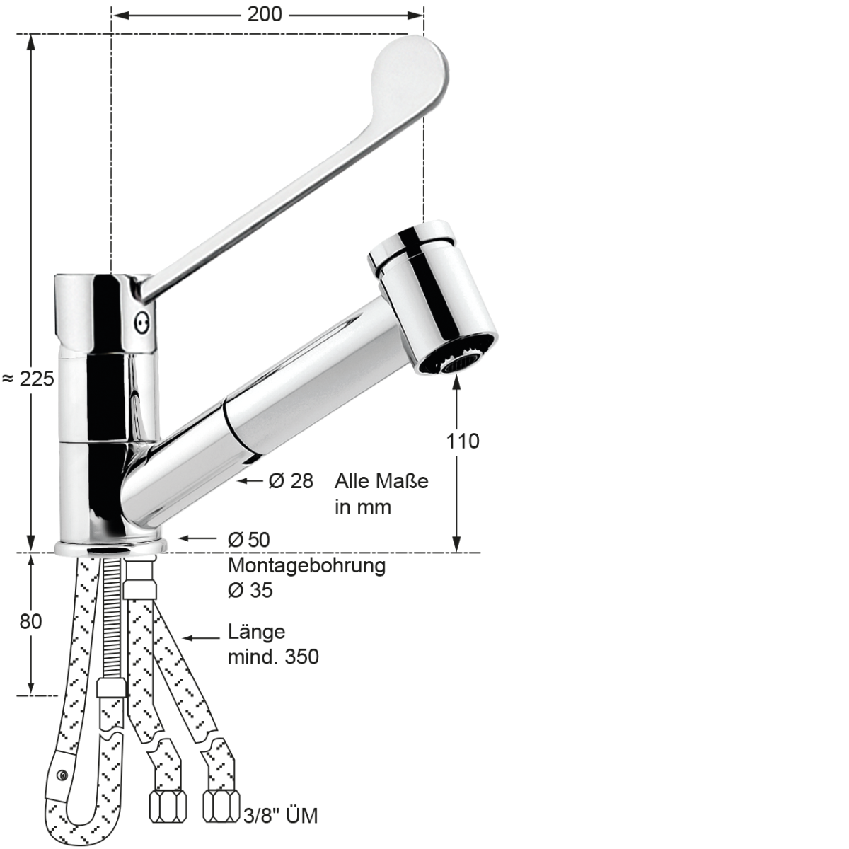 - Höhe bis Auslauf: 110 mm