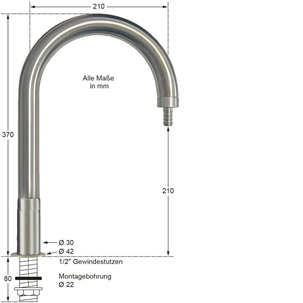 360° schwenkbarer Rohrauslauf Ø 30 mm
