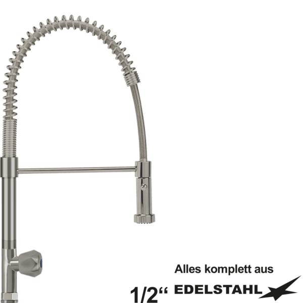 Vorspülbrausen Standventil 1/2″ ohne Auslaufventil am Rohr mit RV komplett aus Edelstahl