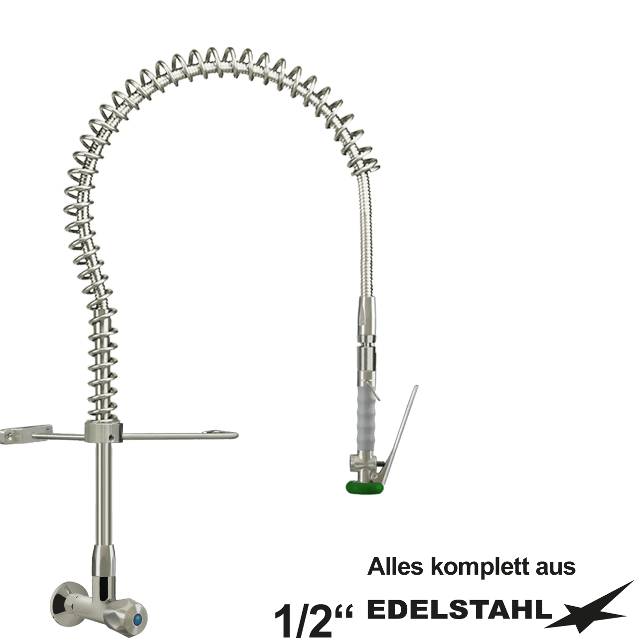Vorspülbrausen Wandventil 1/2″ ohne Auslaufventil am Rohr mit RV komplett aus Edelstahl