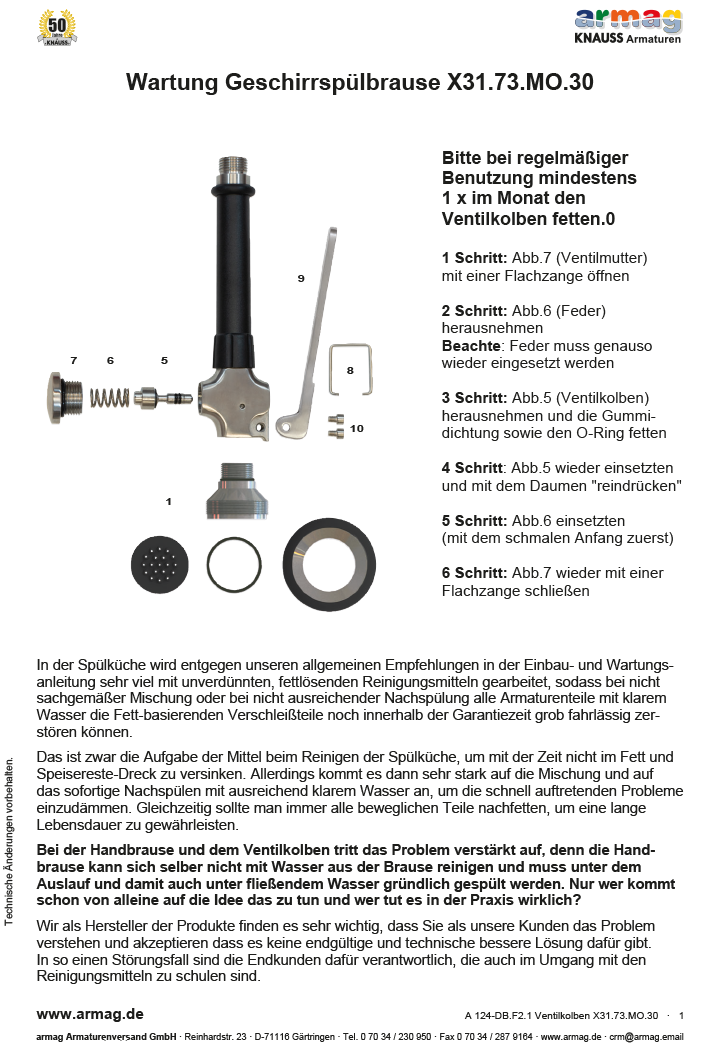 Die Brause ist wartungsfreundlich aufgebaut und mit wenigen Handgriffen von Schmutz und Kalk gereinigt