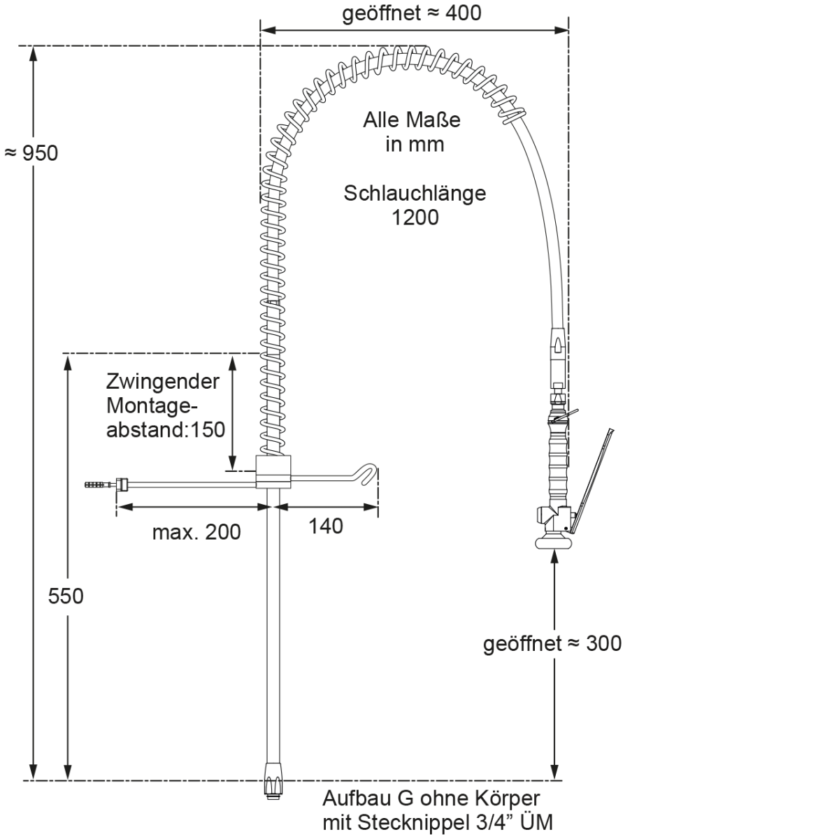 meditop VE-Wasser Schlauchpendelbrause-Garnitur 3/4″ ÜM