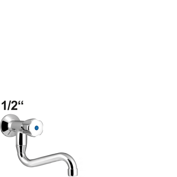 Wandventil 1/2″ mit Pentachrom-Griff und Schwenkauslauf nach unten