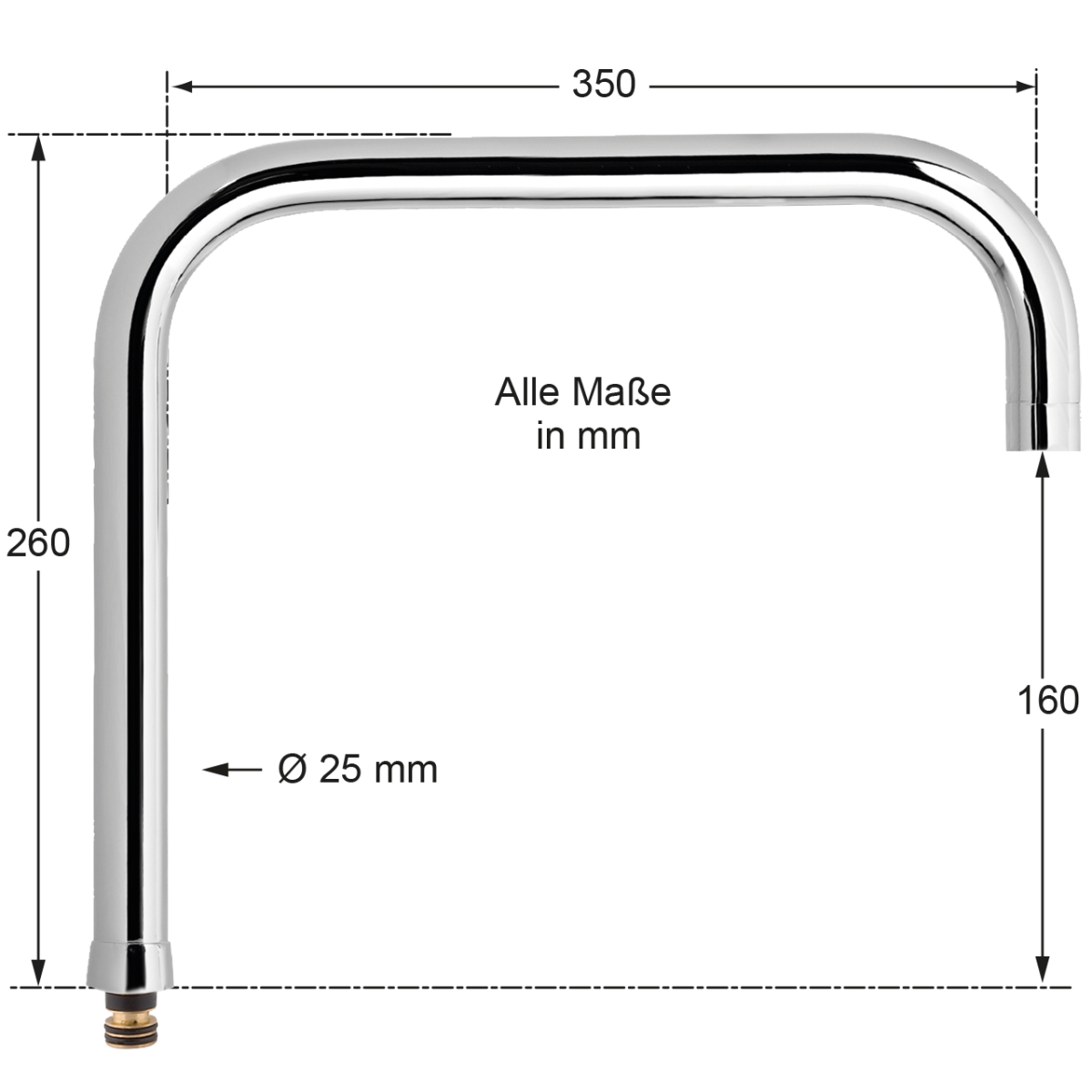 Schwenkauslauf A300 HU Ø 25 mm gesteckt