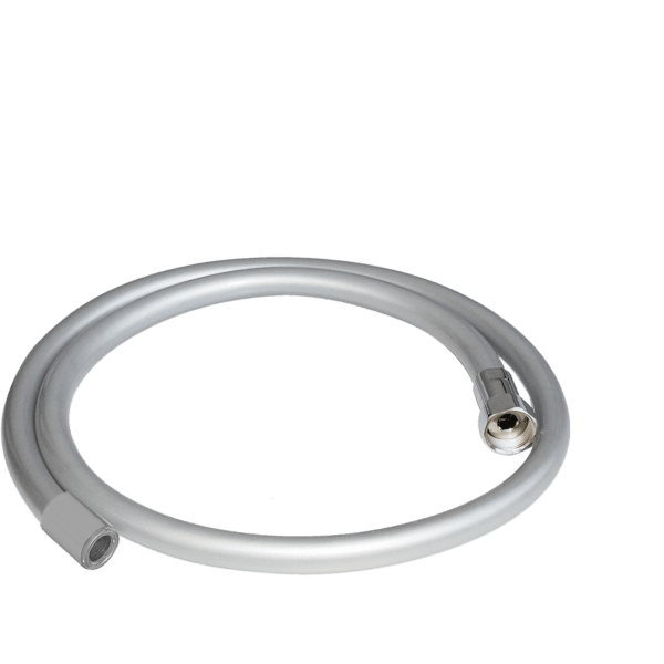 Schlauch in silbergrau mit Verschraubungen aus Messing verchromt und Vollstrahlhülse