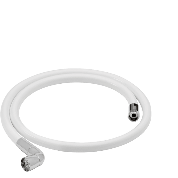 Schlauch in silbergrau mit Verschraubungen aus Messing verchromt und Gießbrause