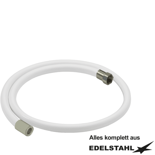 Schlauch in weiß mit Verschraubungen aus Edelstahl und Vollstrahlhülse