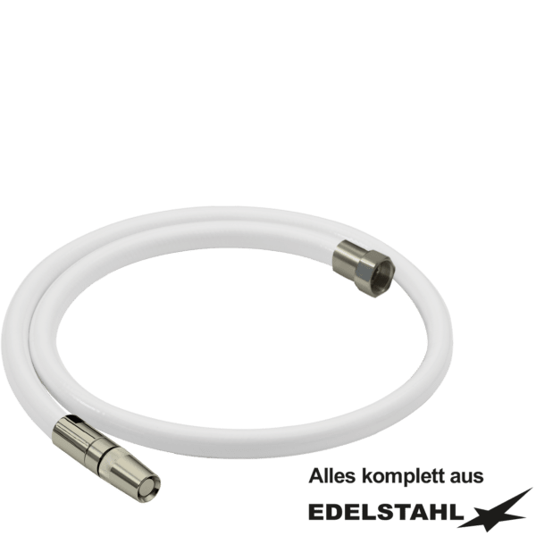 Schlauch in weiß mit Verschraubungen aus Edelstahl und verstellbarer Strahldüse