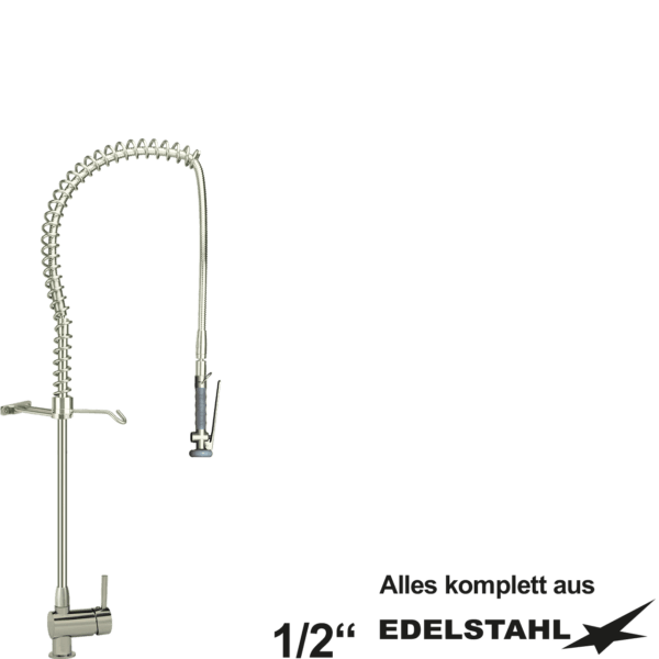 Vorspülbrausen Hebelmischer-Einlochbatterie 1/2″ ohne Auslaufventil am Rohr, ohne RV und Aufbau komplett aus Edelstahl