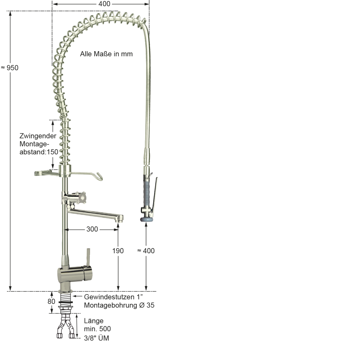 - Höhe bis Auslauf: 190 mm
