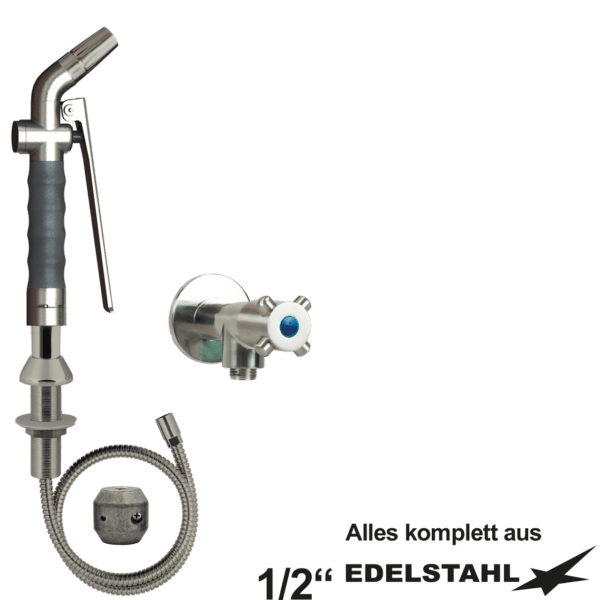 Wandventil 1/2″ mit 4-Flügel-Griff und Brause – mit Wandhalter, Befestigungs-Set und Dichtungen
