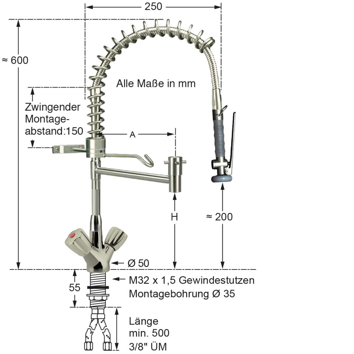 • Wasseranschluss: 3/8" ÜM