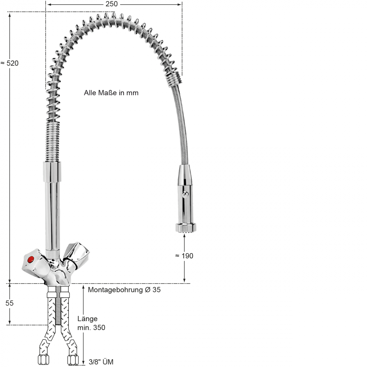 Armaturenkörper,Feder mit Schlauch und Umstellbrause