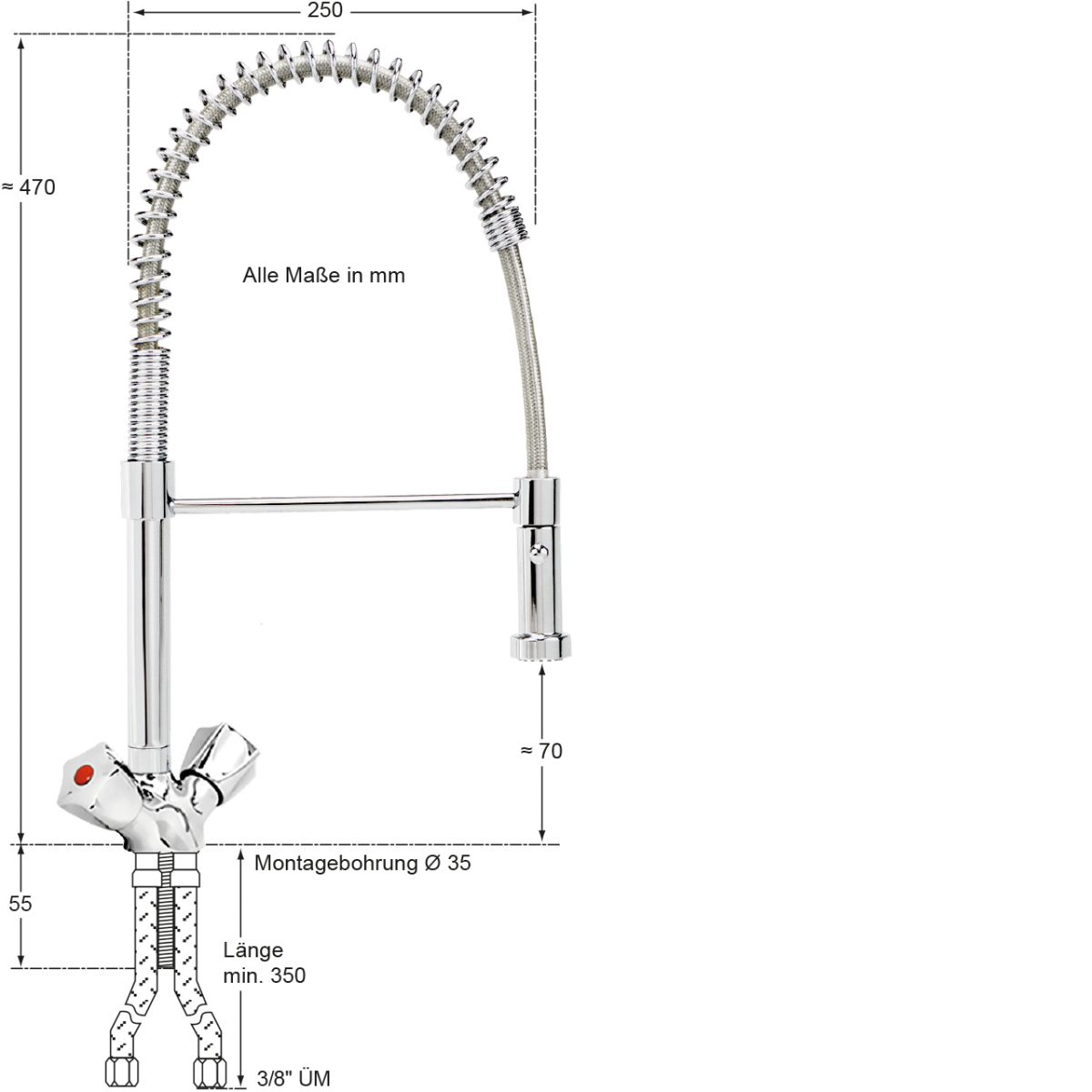 - Wasseranschluss: 3/8" ÜM