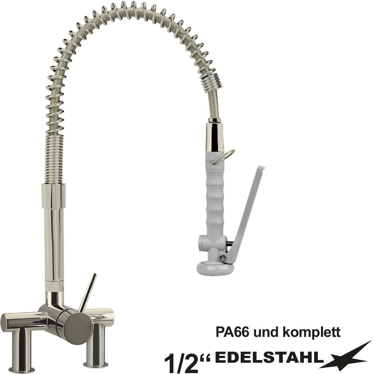 Vorspülbrausen Hebelmischer-Standbatterie 1/2″ ohne Auslaufventil am Rohr mit RV, aus Edelstahl