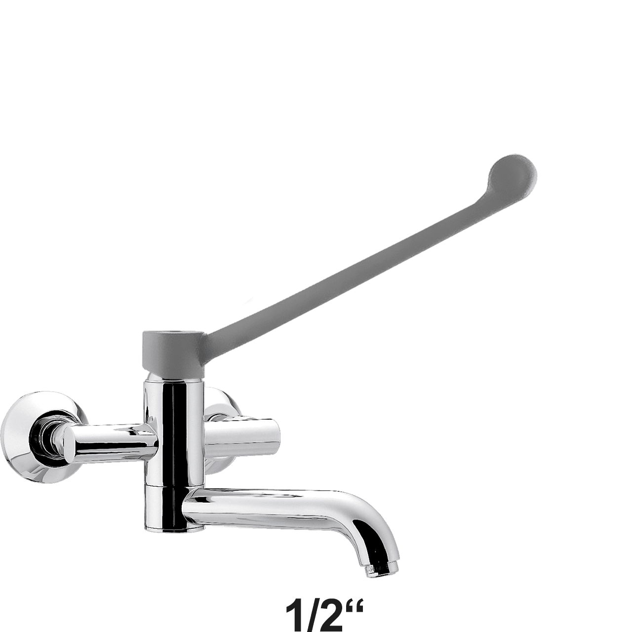 Hebelmischer-Wandbatterie 1/2″ T80 mit absperrbaren Anschlüssen 1/2″ x 3/4″ mit langem Hebel verchromt