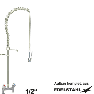 Waschküchenbrause Hebelmischer-Einlochbatterie 1/2″ ohne Auslaufventil am Rohr mit RV komplett aus Edelstahl, Gesamhöhe 480 mm